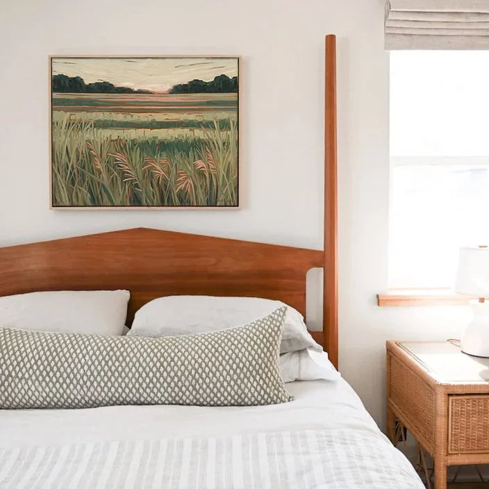 You can choose to add a white oak floating frame to beautifully elevate your canvas print. Frames are made in the U.S. and are solid white oak.
