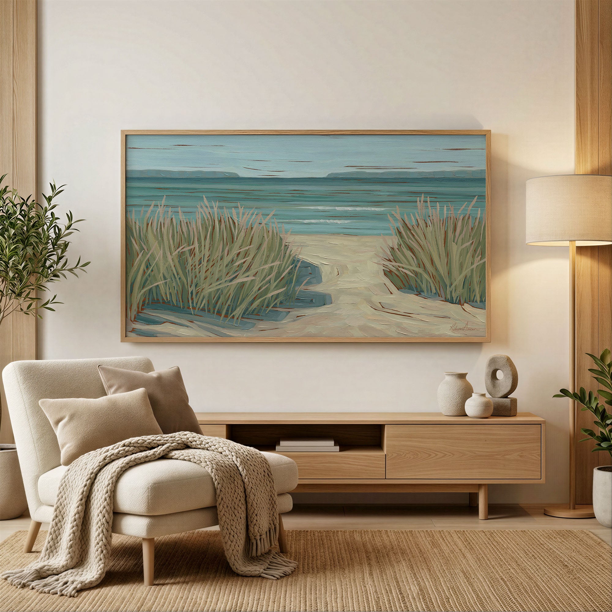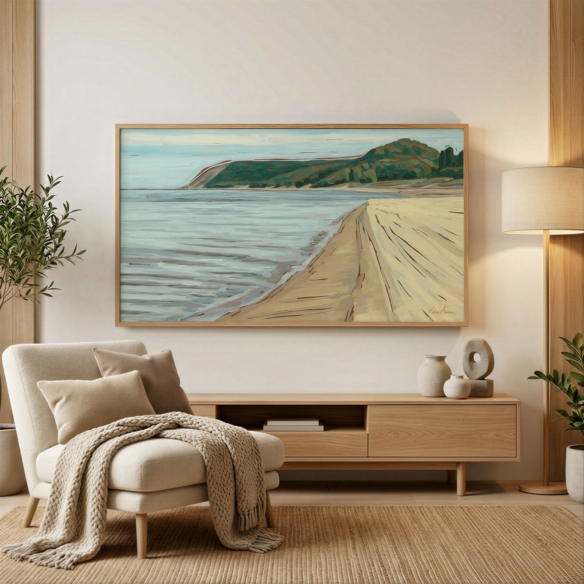 This bundle includes five image files formatted perfectly for your Samsung Frame TV. Featuring some of my favorite lake paintings. Three of Lake Michigan and two that represent many of the smaller inland lakes we love. Each painting was carefully selected and formatted to look great on your Frame TV.