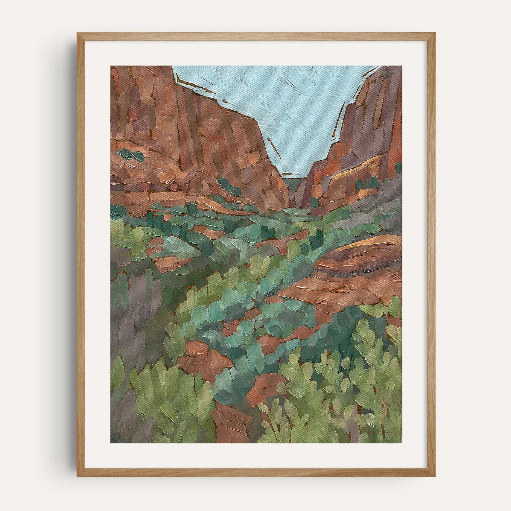 You can choose to add a white oak floating frame to beautifully elevate your canvas print. Frames are made in the U.S. and are solid white oak.
