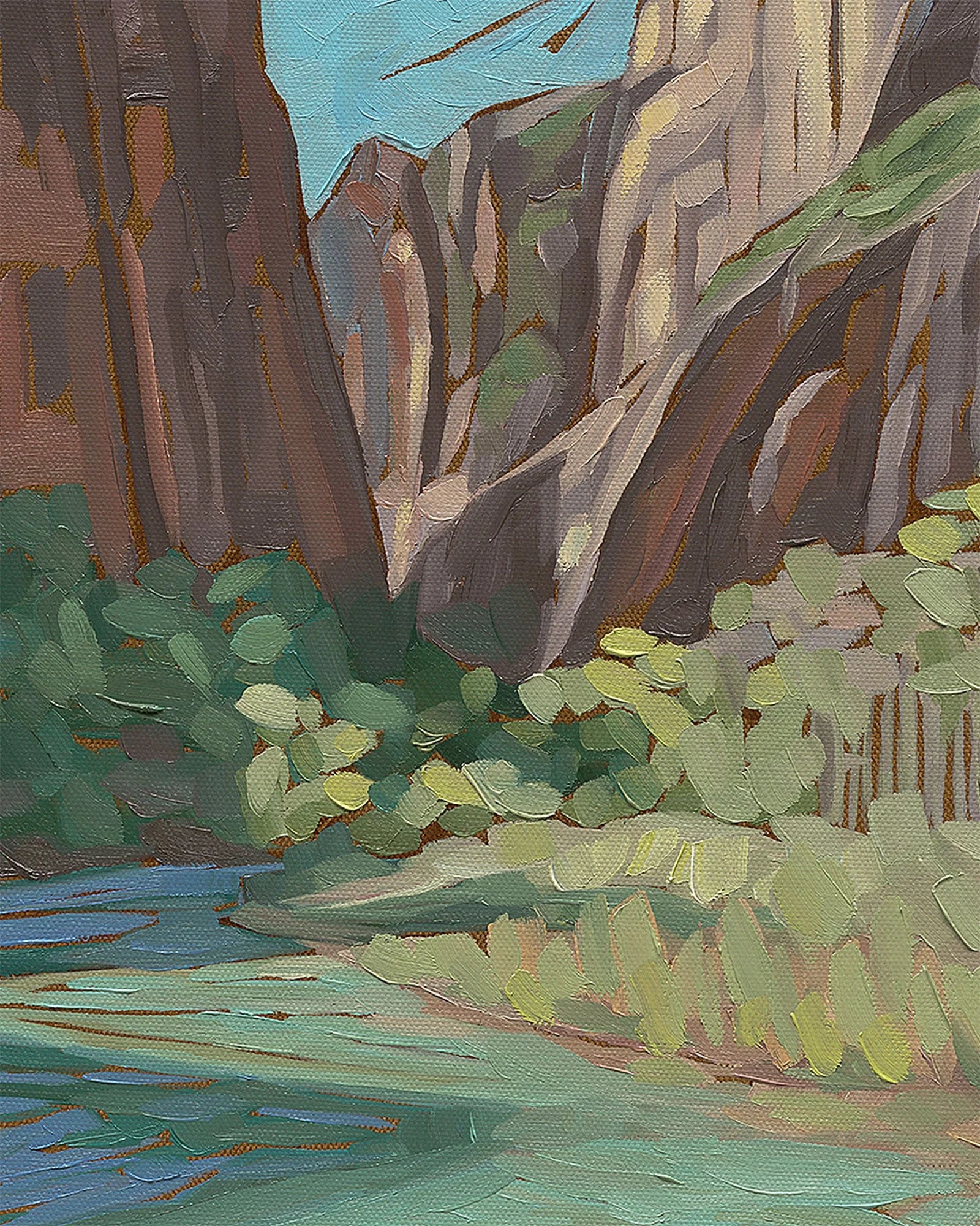 The river that day was the color of a starling egg. The freshly leafed out trees, chartreuse in the sunlight. And the canyon walls a rich copper with hints of vermillion and a purple the color of my darkest lipstick that I only wear when I feel brave.