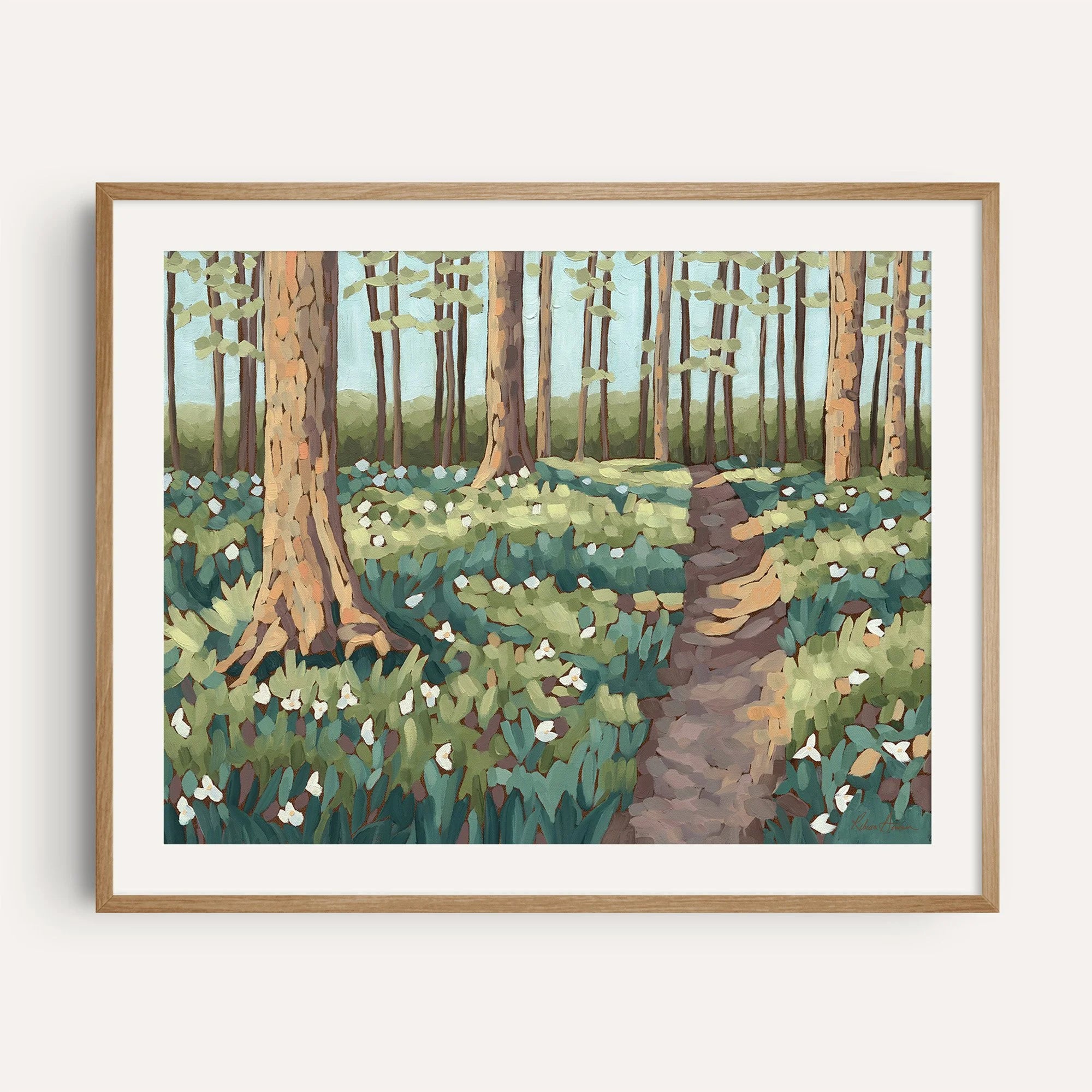 This piece highlights the beautiful trillium that blanket our forest floors here in Northern Michigan in late Spring every year. I look forward to this moment all winter and make sure to enjoy lots of wooded hikes during this time.