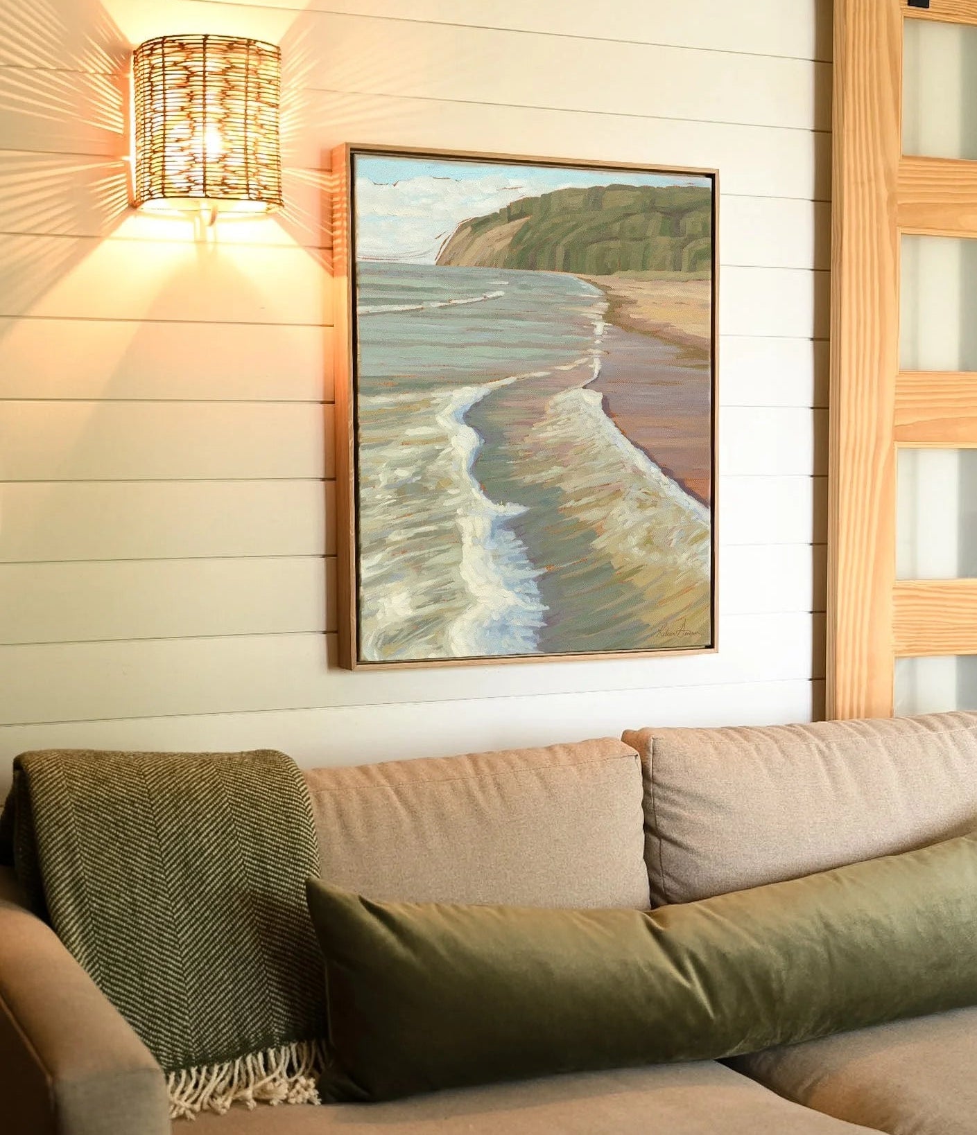 This piece is from the Shoreline Collection —a tribute to the diverse beauty of Michigan’s shorelines and the transformative wonder of exploring new places. Full of joyful summer blues, peaceful greens, warm earth tones, this collection is a nice balance of refreshing and cozy.
